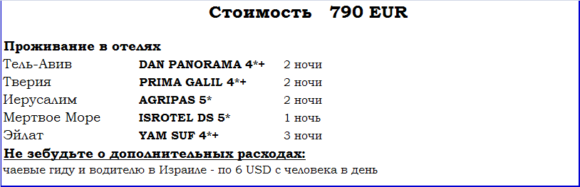 вашему вниманию программу рекламного тура в Израиль