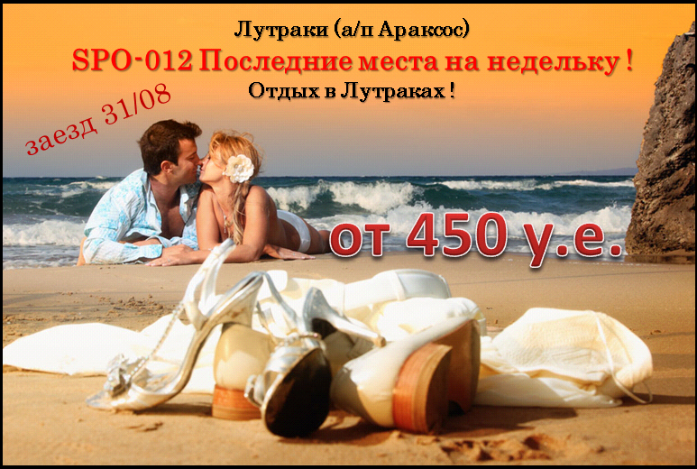 31 Авг 2013 12:46:21 ГРЕЦИЯ Лутраки (а/п Араксос) 31.08 на неделю от 450 у.е., последние места от фирмы СОЛВЕКС