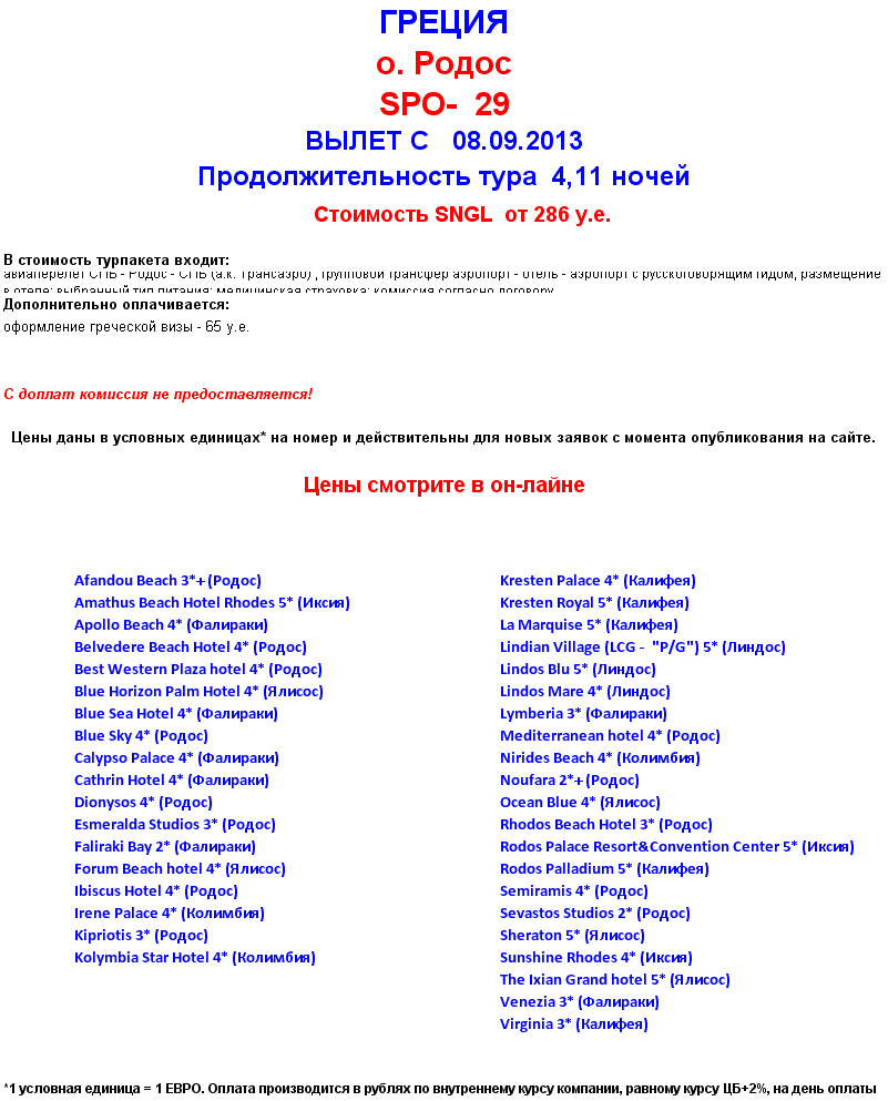 03 Сен 2013 18:15:02 ГРЕЦИЯ Родос 08.09 на 04 и 11 ночей от 286 у.е. от фирмы ЮЖНЫЙ КРЕСТ