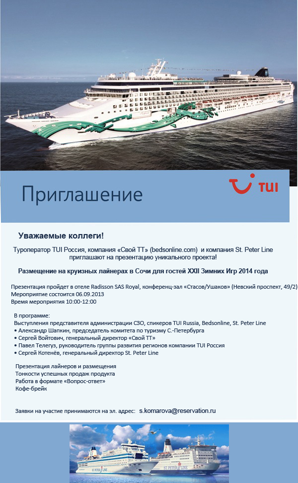 TUI приглашает туристические агентства Санкт-Петербурга на семинар,