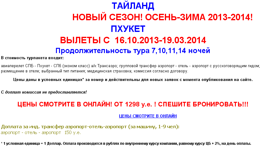 05 Сен 2013 14:03:15 ТАИЛАНД Пхукет осень-зима 2013-2014 от фирмы ЮЖНЫЙ КРЕСТ