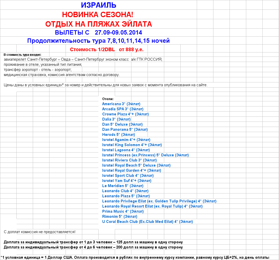 06 Сен 2013 11:50:06 ИЗРАИЛЬ. Новинка сезона. Отдых в Эйлате от 888 у.е. от фирмы ЮЖНЫЙ КРЕСТ
