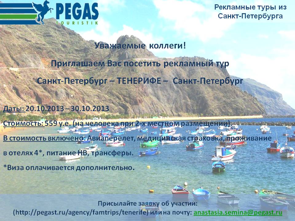 19 Сен 2013 12:10:11 ИСПАНИЯ. Рекламный тур Тенерифе 20.10-30.10 из СПб от фирмы PEGAS