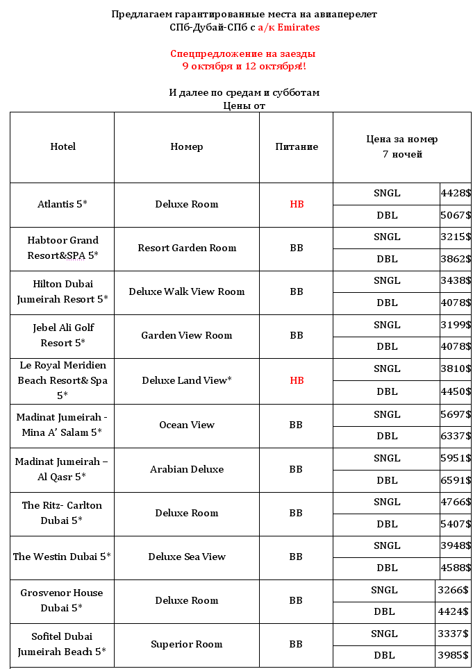 авиаперелет СПб-Дубай-СПб (а/к Emirates), проживание