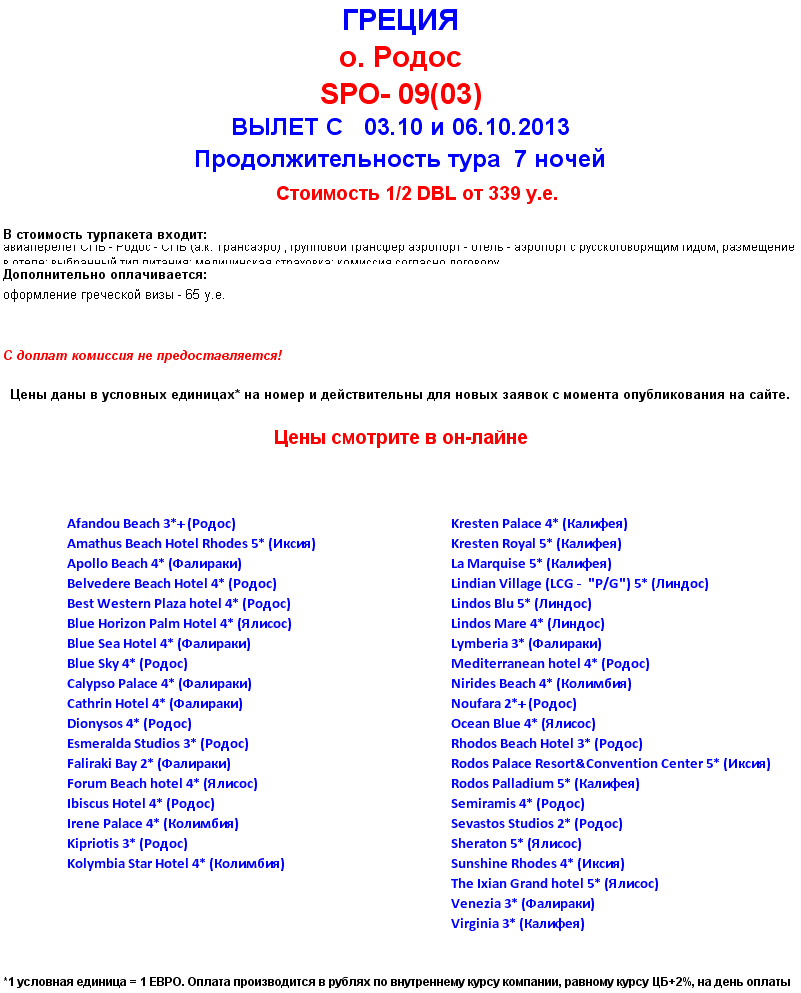 30 Сен 2013 14:06:15 ГРЕЦИЯ Родос 03.10 и 06.10 от 339 евро от фирмы ЮЖНЫЙ КРЕСТ