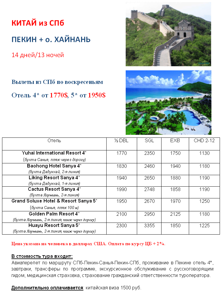 03 Окт 2013 03:52:23 КИТАЙ Пекин-Хайнань 14д/13н из СПб от фирмы ПРОТРЕВЭЛ