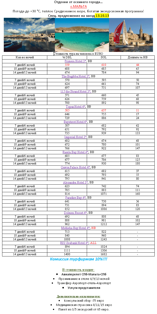 04 Окт 2013 13:54:06 МАЛЬТА 13.10 - спо на отели от фирмы ИВОЛГА