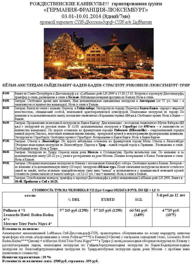 10 Окт 2013 15:53:17 ГЕРМАНИЯ-ФРАНЦИЯ-ЛЮКСЕМБУРГ 03.01-10.10 на Рождество, гарант. группа от фирмы АРТ-ТРЕВЕЛ