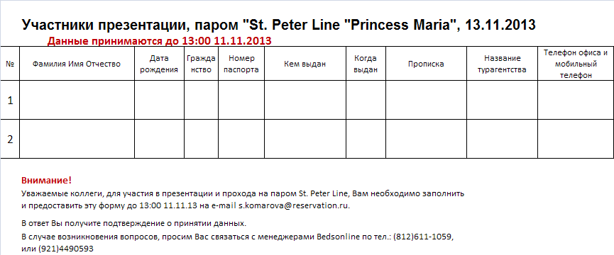 мероприятии и прохождения на паром, необходимо заполнить прилагаемую форму и