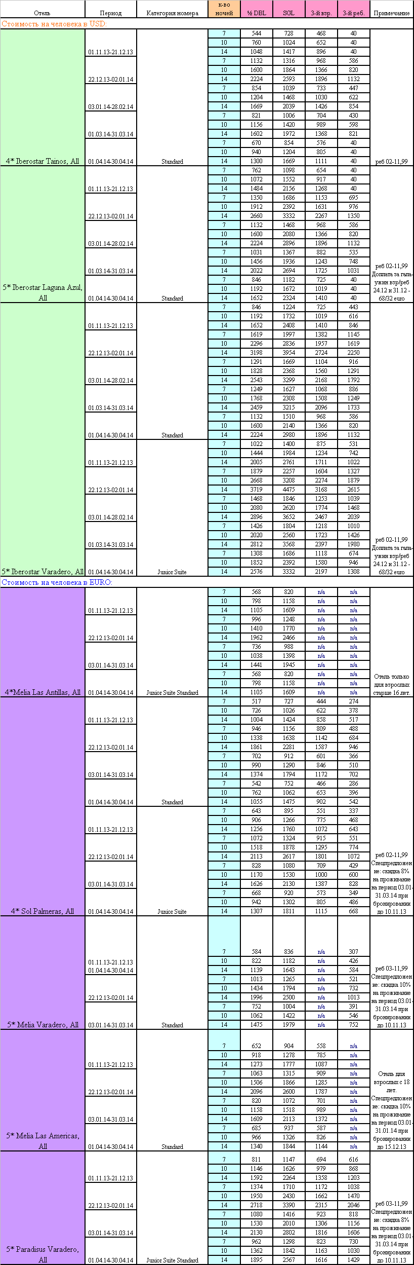Примечание: Цены на отели и остальные услуги могут изменяться