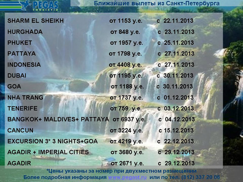 21 Ноя 2013 14:14:23 ИНФО - спо на ближайшие даты от фирмы PEGAS
