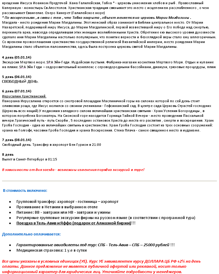 26 Ноя 2013 15:11:07 ИЗРАИЛЬ "Земля обетованная" 02.01-09.01 гарант. а/б от фирмы КАПРИКОН