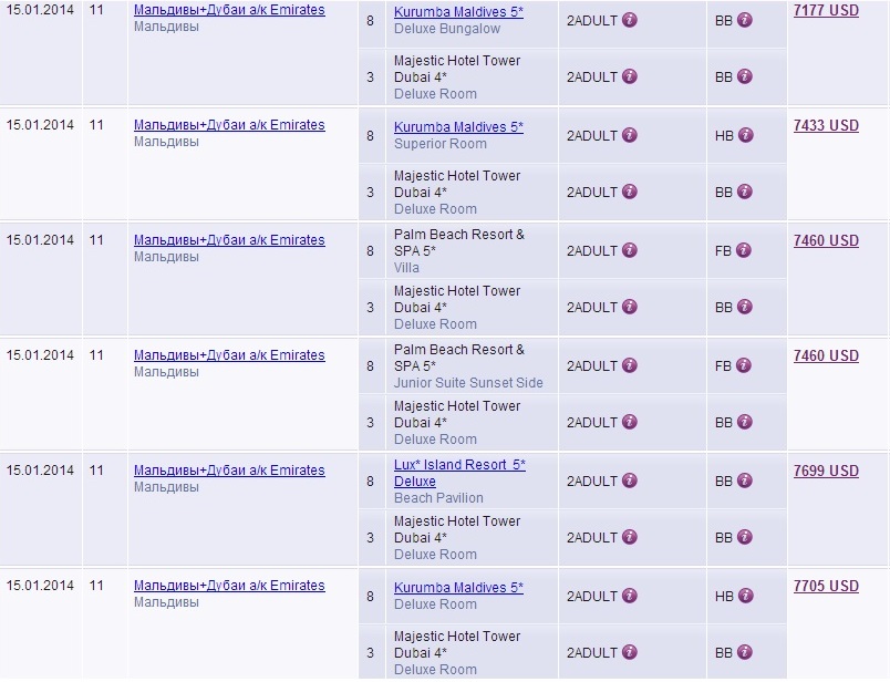 указанным питанием на Мальдивах , в ОАЭ отель Majestic