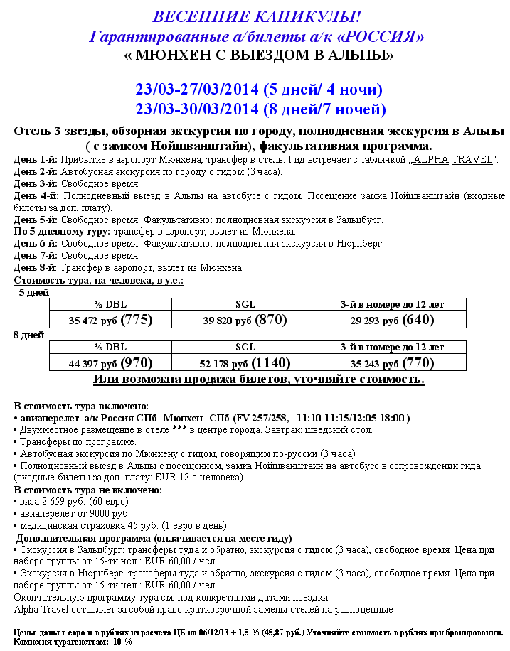 09 Дек 2013 13:55:18 ГЕРМАНИЯ 23.03-27/30.03 "Мюнхен с выездом в Альпы на весенние каникулы от фирмы АРТ-ТРЕВЕЛ