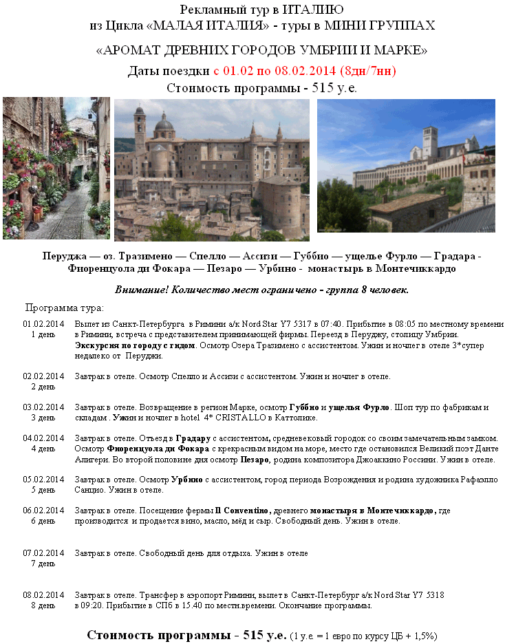 В тур входит: авиаперелет СПб-Римини-СПб а/к «Nord Star»; 2х