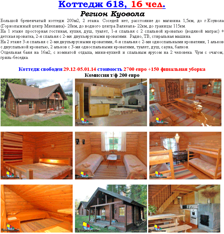 16 Дек 2013 11:38:34 ФИНЛЯНДИЯ Коувола Коттедж (до 16 чел) 29.12-05.01 за 2700 евро от фирмы БЮРО ПУТЕШЕСТВИЙ