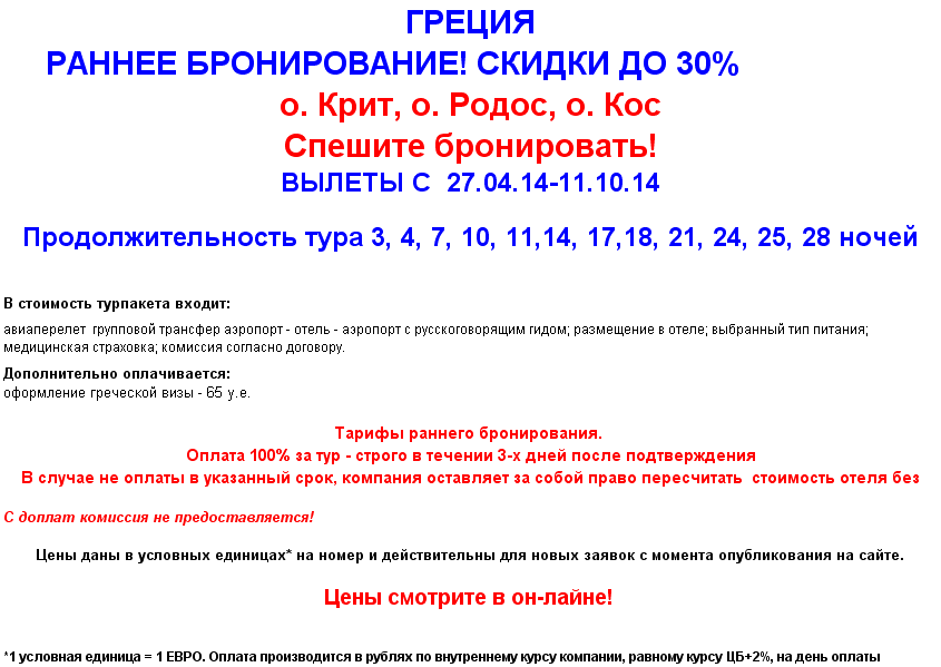 24 Дек 2013 11:23:39 ГРЕЦИЯ Крит, Кос, Родос - раннее бронирование, скидки до 30% от фирмы ЮЖНЫЙ КРЕСТ