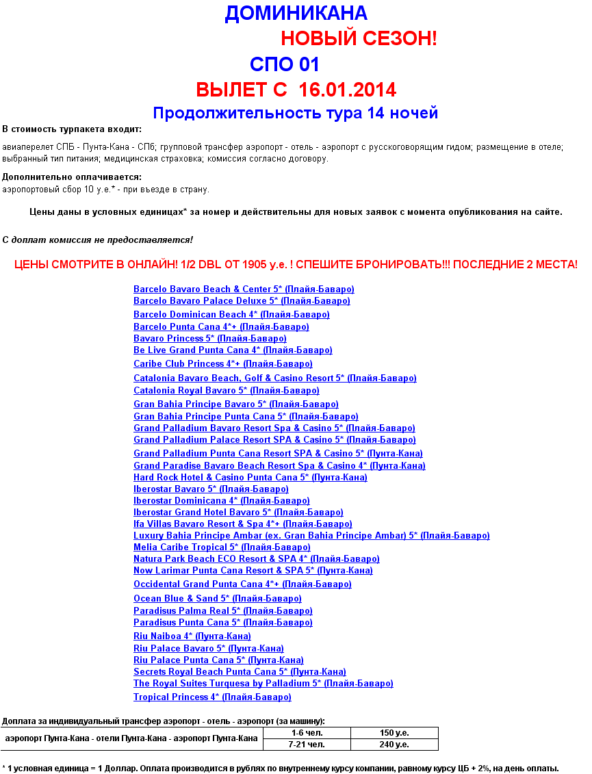 09 Янв 2014 14:14:36 ДОМИНИКАНА 16.01 на 14н от $1906 от фирмы ЮЖНЫЙ КРЕСТ