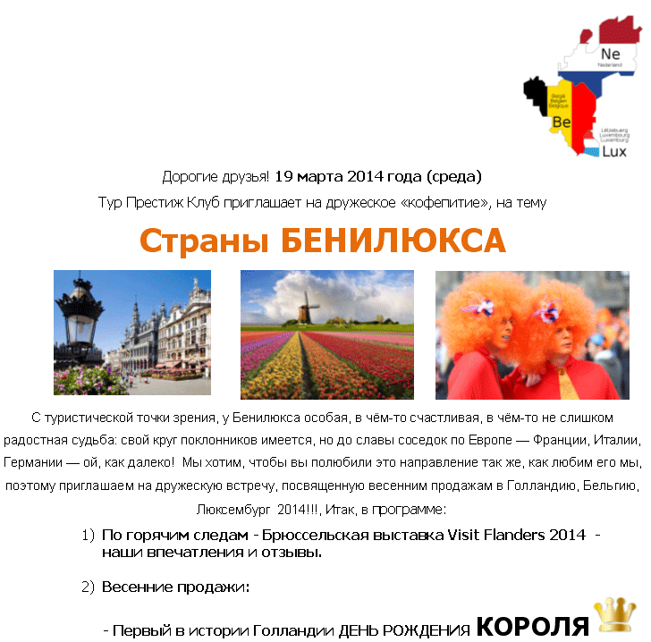 14 Мар 2014 13:00:03 СЕМИНАР 19.03 БЕНИЛЮКС - регулярные и необычные туры от фирмы ТУР ПРЕСТИЖ