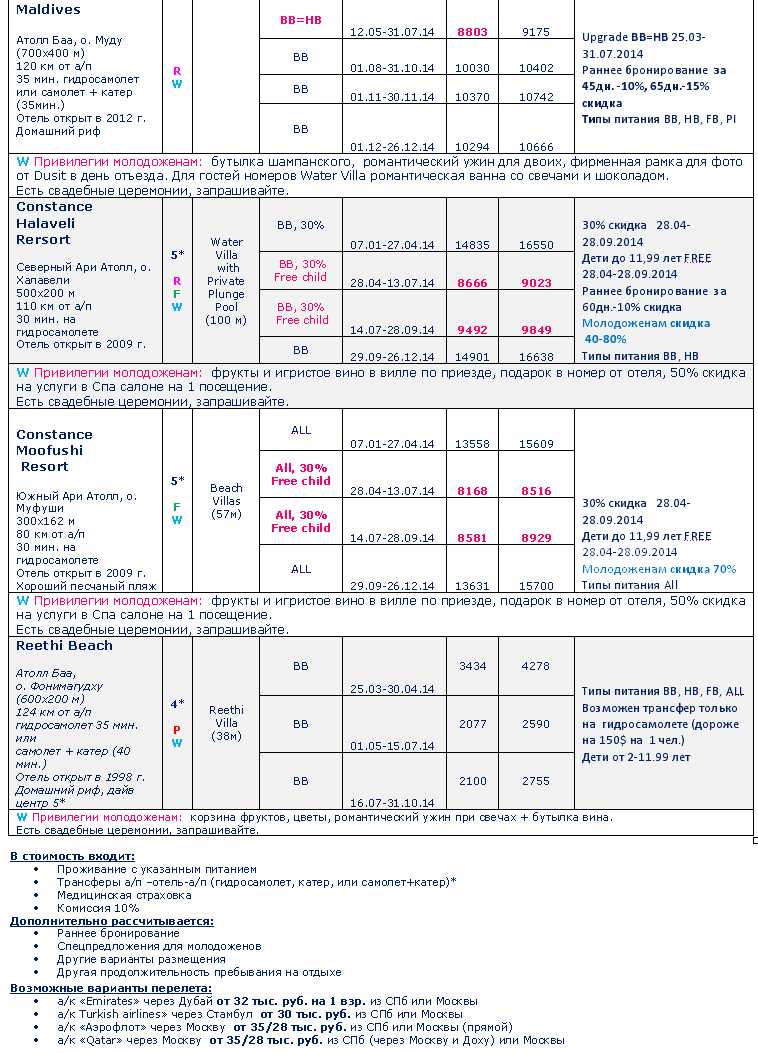 МАЛЬДИВЫ - коллекция отелей 2014 от фирмы ПРАТА |