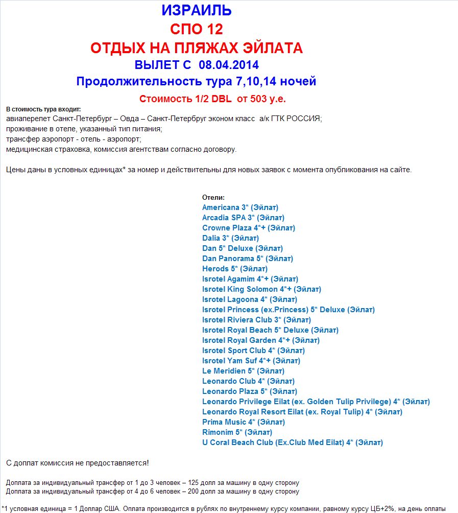 07 Апр 2014 13:39:29 ИЗРАИЛЬ Супер цена на вылет 08.04.14 от 503 у.е. от фирмы ЮЖНЫЙ КРЕСТ