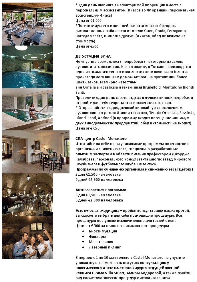 | 07 Апр 2014 | 23:18:40 | ИТАЛИЯ Тоскана на майские Castel Monastero 5*, СПА-Детокс от фирмы ХЕЛЕН ТУРС |