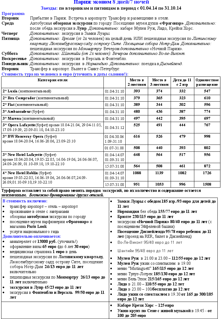 14 Апр 2014 13:51:45 ФРАНЦИЯ Париж эконом 8д/7н (по вт и пт) от фирмы ДЯДЮШКА НИК
