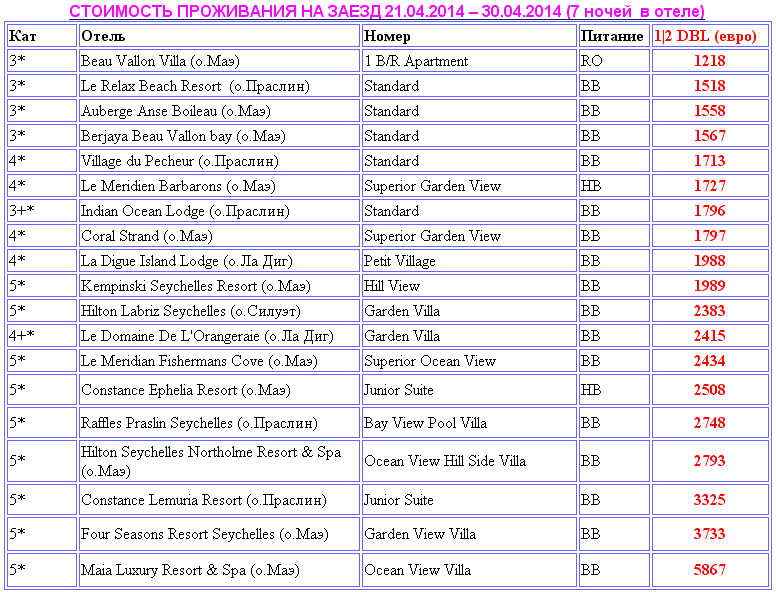 14 Апр 2014 14:38:09 СЕЙШЕЛЫ в апреле на 7н от 1218 евро, ежедневно на Emirates от фирмы DIAMOND TOURS