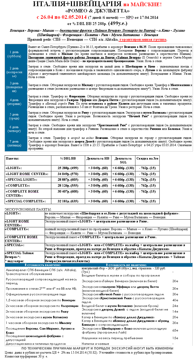 21 Апр 2014 13:57:30 ИТАЛИЯ-ШВЕЙЦАРИЯ 26.04-02.05 за 499 евро "Ромео и Джульетта" - последние места от фирмы АРТ-ТРЕВЕЛ