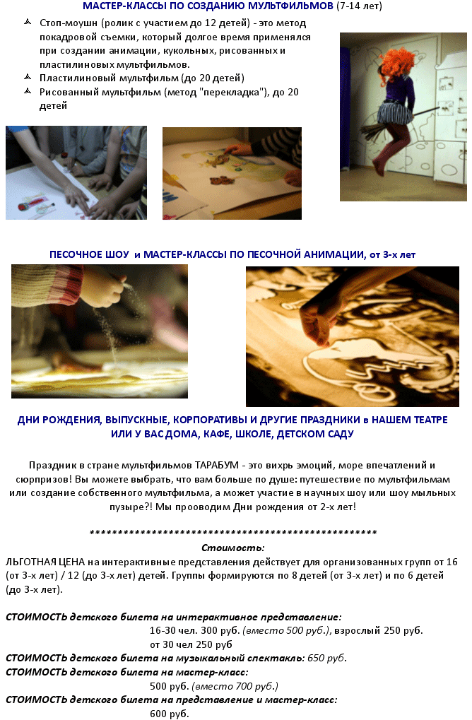 РОССИЯ - СПб - ДЕТЯМ - "Тарабум" - театр, музей и творческая студия - от фирмы МУЗЕЙ-ТЕАТР ТАРАБУМ |