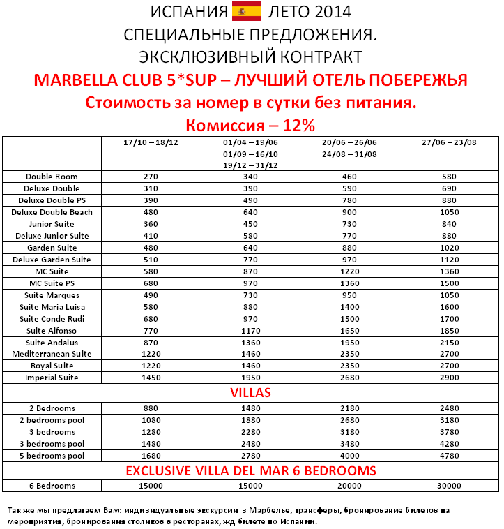 ИСПАНИЯ спо на Marbella Club 5* sup, ком. 12% от фирмы ХЕЛЕН ТУРС |