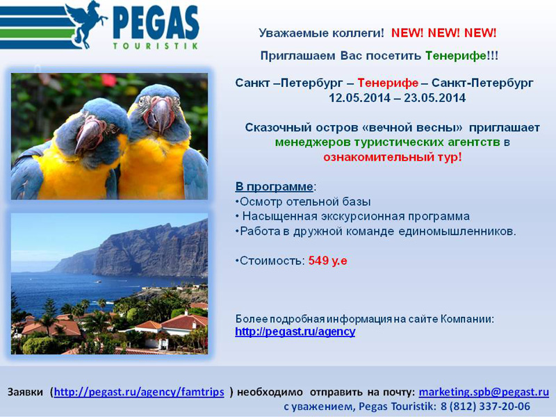 05 Май 2014 13:04:28 ИСПАНИЯ Тенерифе 12.05-23.05 Рекламный Тур за 549 евро от фирмы PEGAS