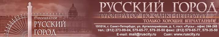 РОССИЯ. СПб. Размещение с 30.05 по 01.06 для группы 44 человек от фирмы РУССКИЙ ГОРОД |