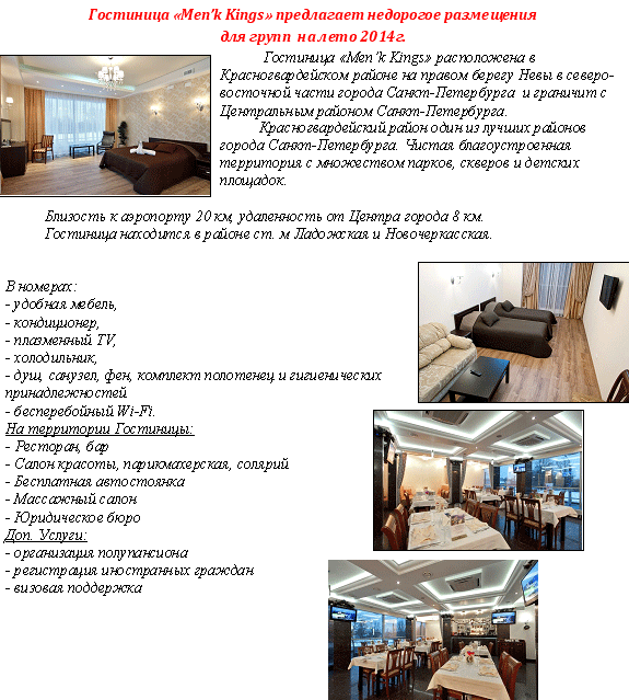 23 Май 2014 13:03:02 РОССИЯ - СПб - отель MENK KINGS - приглашаем к сотрудничеству от фирмы MENK KINGS