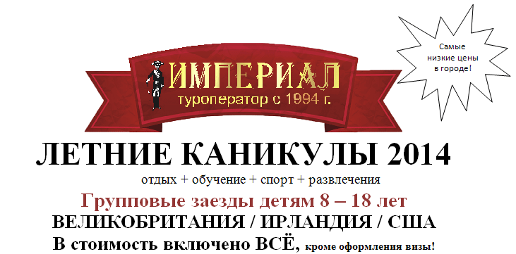 ВЕЛИКОБРИТАНИЯ, ИРЛАНДИЯ, США: детям, студентам - отдых + обучение + спорт + развлечения от фирмы ИМПЕРИАЛ |