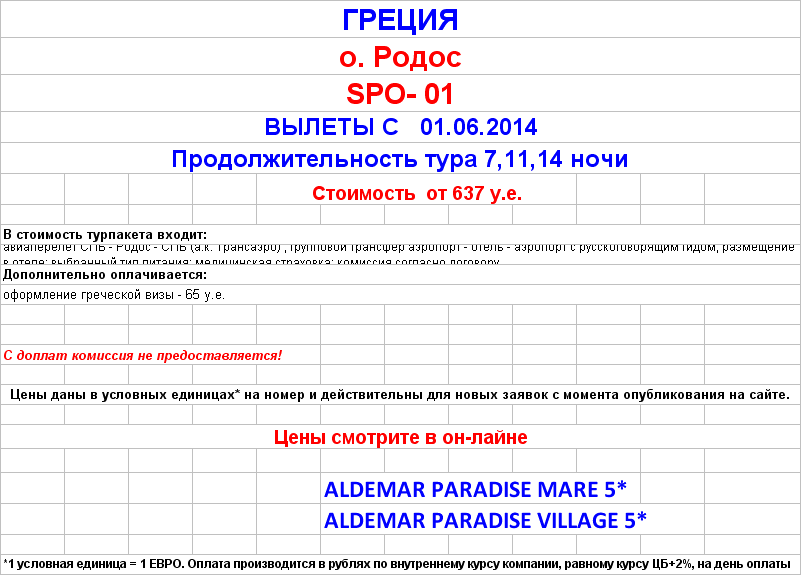 30 Май 2014 12:47:10 ГРЕЦИЯ. Родос 01.06.14 Aldemar от 637 у.е. от фирмы ЮЖНЫЙ КРЕСТ