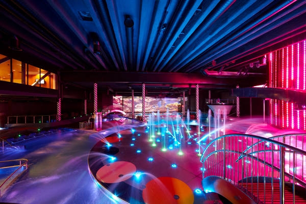 фонтанами, игровыми бассейнами, миром саун, а также водяными горками и