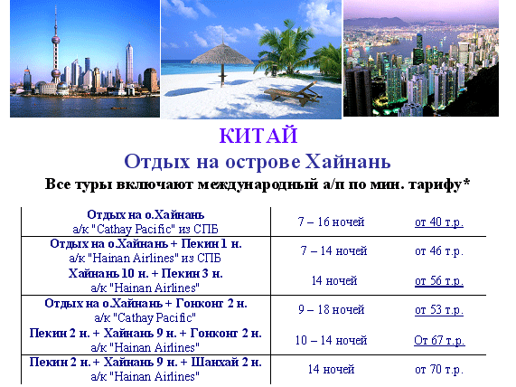 программа в Пекине, Гонконге и Шанхае в соответствующих турах с