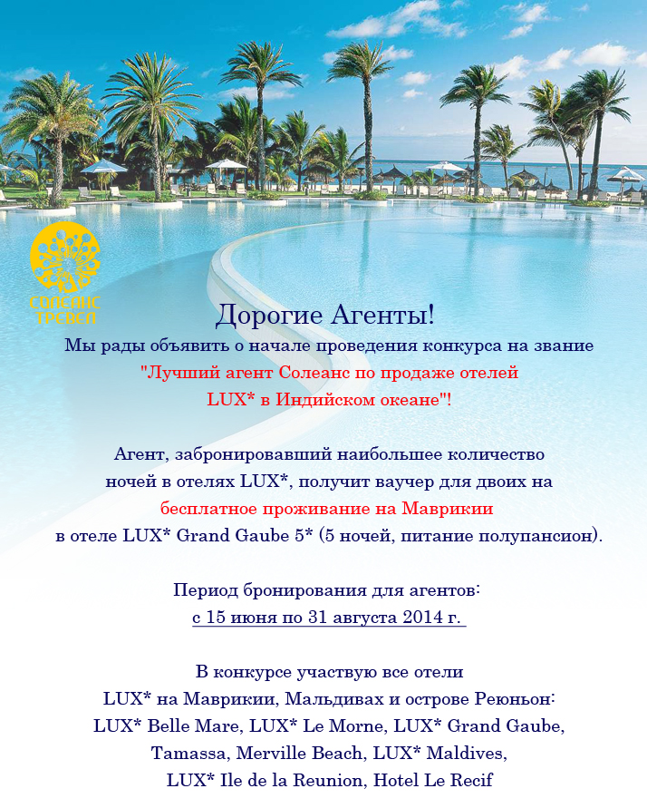 19 Июн 2014 16:56:28 МАВРИКИЙ, МАЛЬДИВЫ, РЕЮНЬОН - отели Lux* в Индийском океана - акция на ЛЕТО от фирмы СОЛЕАНС ТРЕВЕЛ