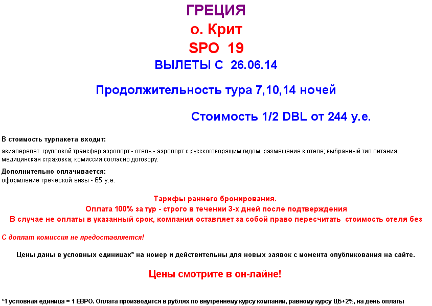 25 Июн 2014 14:33:37 ГРЕЦИЯ Крит 26.06 на 7/10/14н от 244 евро от фирмы ЮЖНЫЙ КРЕСТ