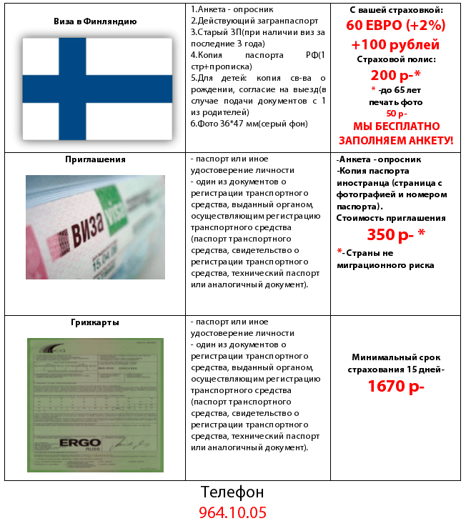 ОФОРМЛЕНИЕ ВИЗ в Финляндию; Тур. Приглашений в РФ; Гринкарт (страховки) от фирмы I LOVE TRAVEL |