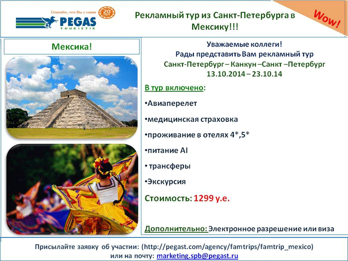 23 Июл 2014 10:49:47 МЕКСИКА 13.10-23.10 Рекламный Тур за $1299 от фирмы PEGAS