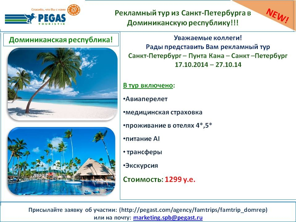 28 Июл 2014 10:14:01 ДОМИНИКАНА 17.10-27.10 рекламный тур 1299 у.е. от фирмы PEGAS