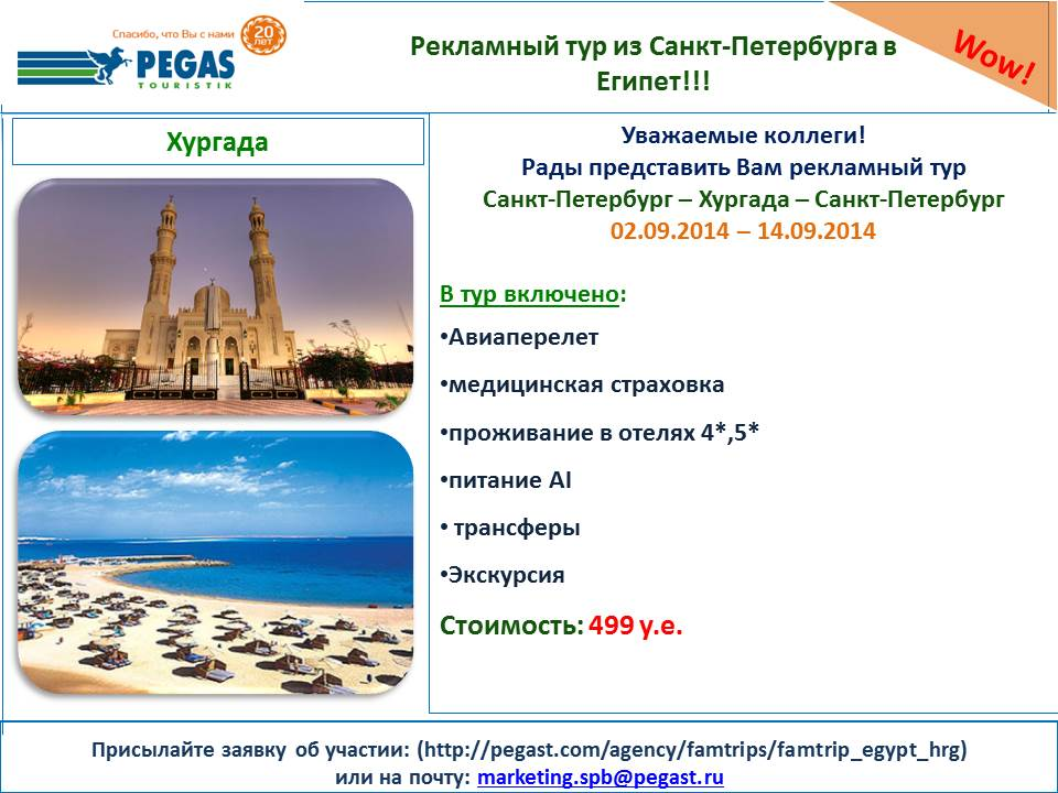 01 Авг 2014 12:50:41 ЕГИПЕТ Хургада 02.09-14.09 РЕКЛАМНЫЙ ТУР за $499 от фирмы PEGAS