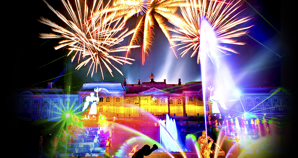 экскурсия по дороге в Петергоф, праздничное шоу, фейерверк, трансфер
