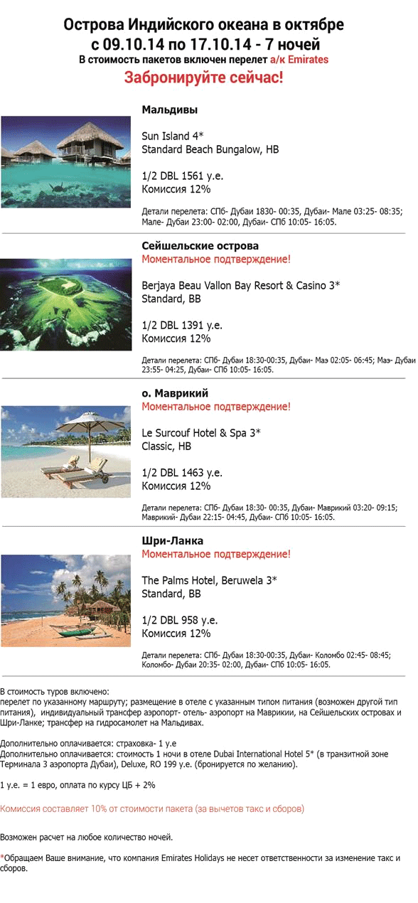 ЭКЗОТИКА Острова Индийского океана 09.10-17.10 - сводка спо от фирмы EMIRATES HOLIDAYS