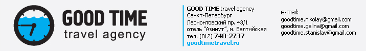 С Ув., GOOD TIME TRAVEL, www.goodtimetravel.ru тел. (812)