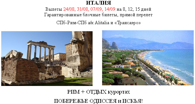 ИТАЛИЯ Рим, экскурс. туры + отдых на поб. Одиссея и о. Искья, 8/12/15д в августе-сентябре от фирмы АРТ-ТРЕВЕЛ |
