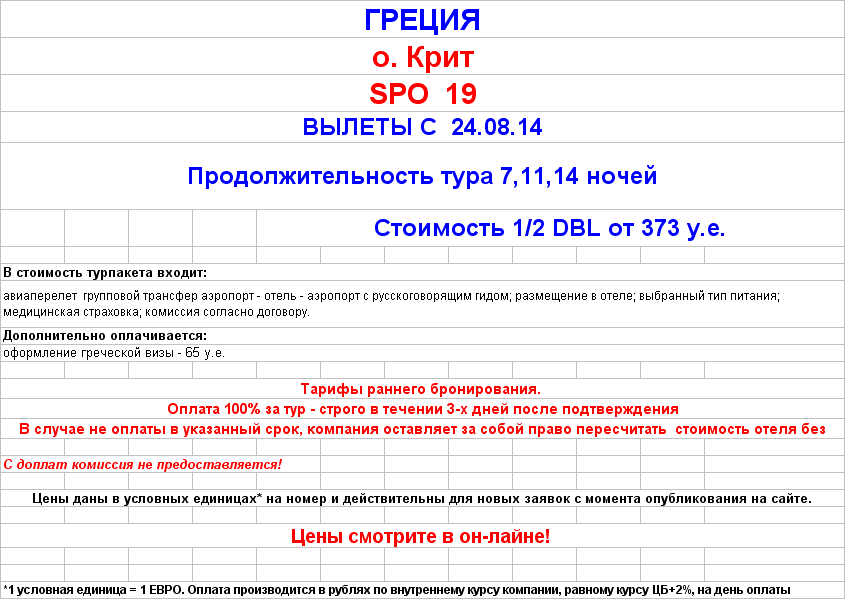 20 Авг 2014 11:52:34 ГРЕЦИЯ. Крит 24.08 на 7,11,14 ночей от 373 у.е. от фирмы ЮЖНЫЙ КРЕСТ