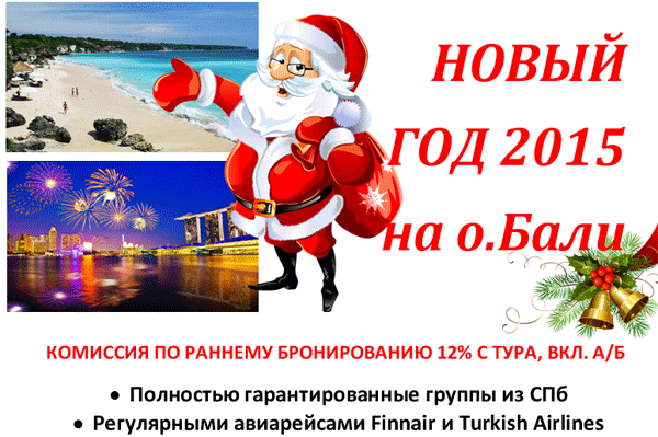 ИНДОНЕЗИЯ Бали-Сингапур на Новый Год, гарант. группы из СПб с ком. 12% - раннее бронирование от фирмы ПИТЕРТУР |